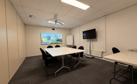 Onze ruime vergaderruimte met airconditioning is ideaal voor bijeenkomsten tot 8 personen.