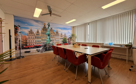 Deze spreekkamer biedt ruimte aan 2 tot 8 personen met airco
